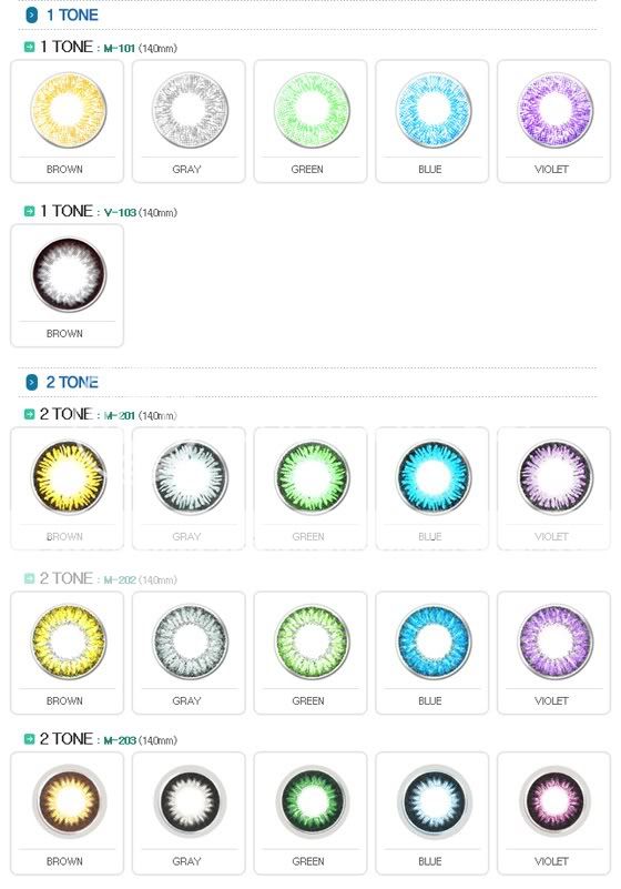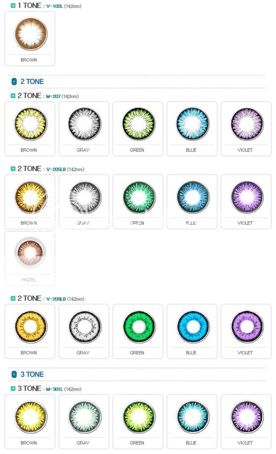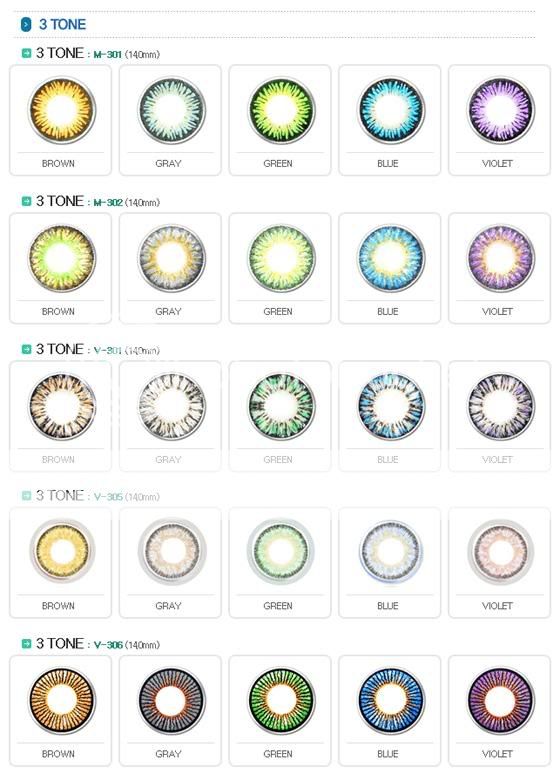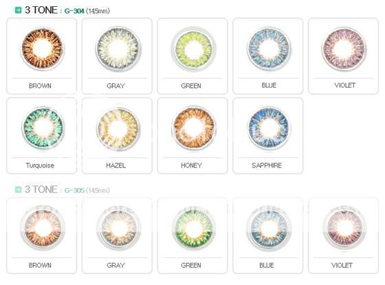 | Cosmetic Lens It is a lens colored a specific figure on the circular shape's transparent contact lens that is being used to adjust eyesight(shortsightedness, astigmatism) that scratch or unevenness is none over its surface by a coloring agent of blue, violet, green, brown, gray, black and white through "dyeing method" or "sandwich pigment-printed method" |